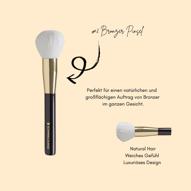 HOW TO: Tauche den Bronzer Pinsel leicht in das Bronzing Powder. Klopfe den Pinsel sanft an, um überschüssiges Produkt zu entfernen und verteile das Produkt großflächig auf dein Gesicht oder Dekolleté.